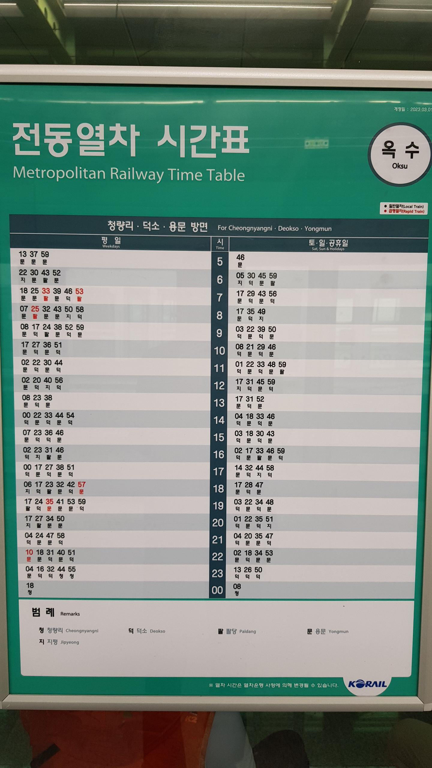 | 경의 중앙선 전철 시간표 / 옥수역-청량리역-상봉역-팔당역(예봉산)-원덕역(추읍산)-용문역(용문산) 20230606 | |