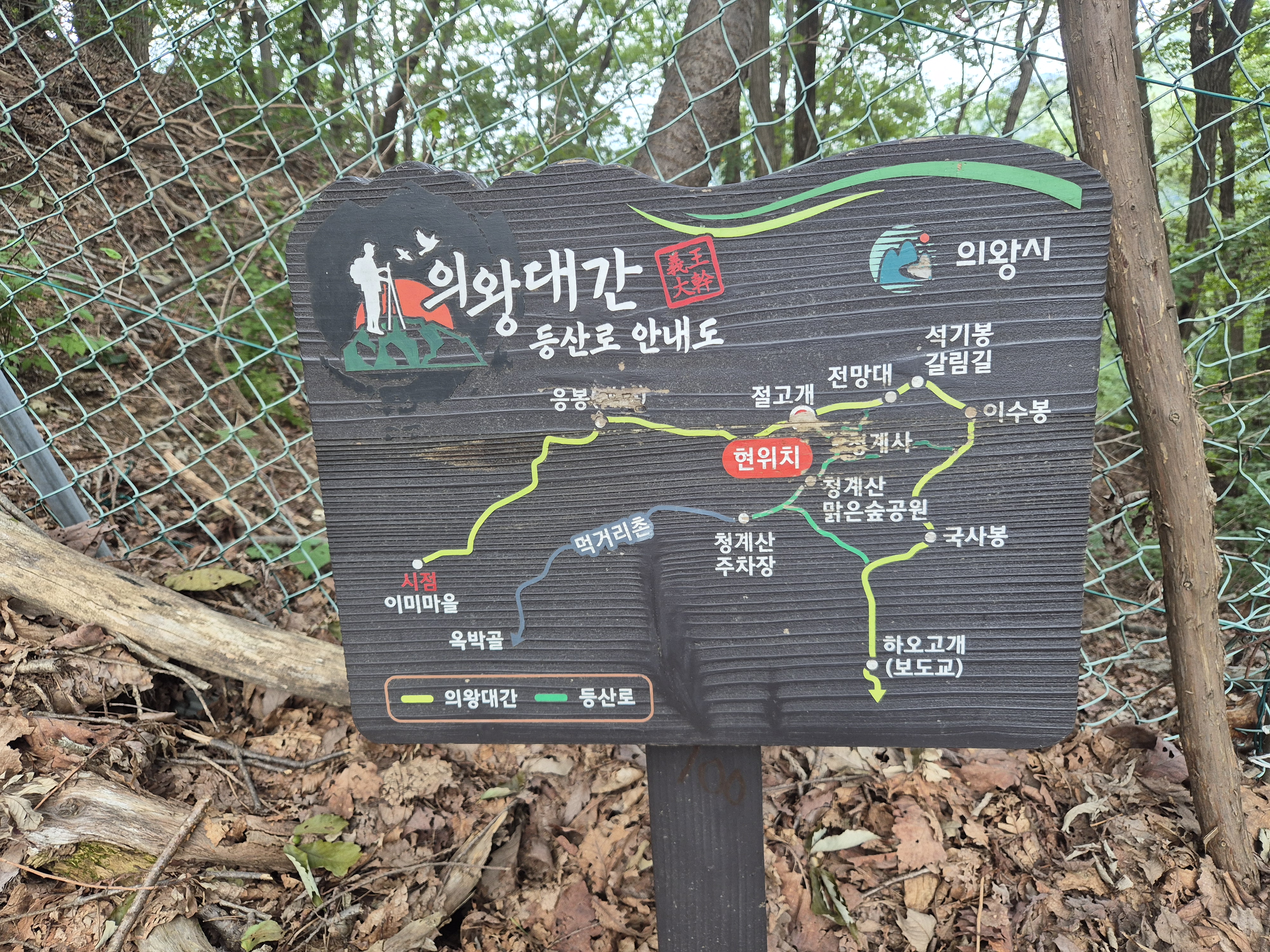 | 청계산 등산코스(대공원역(서울랜드)-과천매봉 전망대-청계산 맑은 숲 공원) 20250824 대공원역(서울랜드) 2번 출구 - 서울대공원 - 소나무정원 - 매봉1약수터 - 매봉2약수터 - 과천매봉 전망대 - 절고개 - 청계산 맑은숲 공원 - 청계사 버스정류장 (10번 버스) - 인덕원역 |